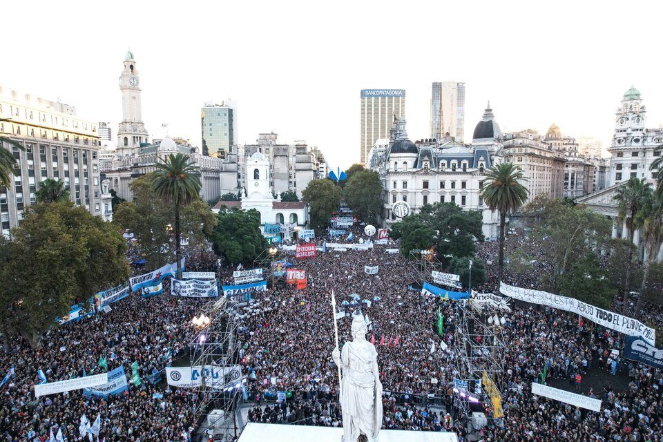 A manifestação do 23 de abril foi um basta contundente! Basta aos cortes na educação pública global que atinge transversalmente a população, incluindo a classe média forçada a ir às escolas privadas com prestações impagáveis. E não somente. Foi também um basta de amplitude horizontal porque a linha de redução de gastos do Estado em todos os campos atinge a todos, rumo ao insuportável. Foi um basta ao túnel obscuro de desmonte brutal dos entes estatais da Ciência, Tecnologia, Cultura, como Conicet, Telam, INCA e cine Gaumont, rumo ao desemprego massivo e às privatizações, ameaçando outros setores como Aerolíneas Argentinas, Correio Argentino, e Banco Nação.