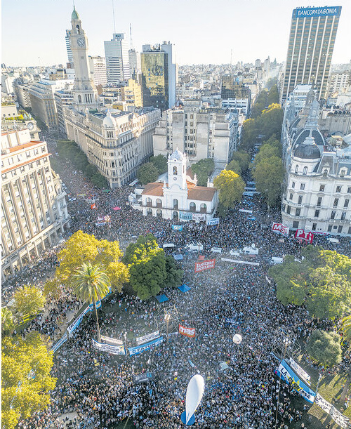 A manifestação deste 23 de abril, dita Marcha Federal Universitária na Argentina, em protesto aos cortes orçamentários brutais do governo de Milei contra a UBA (Universidade de Buenos Aires) e várias universidades públicas, foi histórica, não só pela gigantesca participação (800 mil na capital e cerca de 1 milhão em todo o país), mas pelo caráter social amplo, transversal que uniu estudantes, professores e reitores a operários e desempregados, jovens a anciãos, famílias inteiras de extratos humildes à da classe média e alta, desde militantes e sindicatos a cidadãos comuns autoconvocados dos bairros.