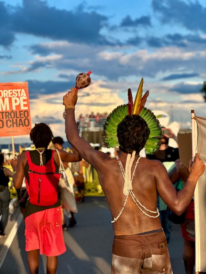 Na Tenda da Amazônia Indígena também ecoou o grito por uma Amazônia livre de petróleo e gás. Lideranças indígenas da Bacia Amazônica denunciaram os impactos da exploração de combustíveis fósseis em seus territórios e ressaltaram a urgência de uma transição energética que respeite seus direitos. Além disso, alertaram que a proteção da Amazônia é fundamental para o equilíbrio climático global.