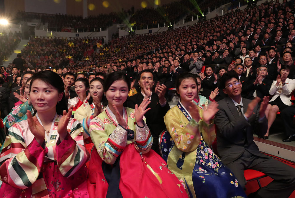 Norte-coreanos durante show de músicos pop sul-coreanos em Pyongyang, abril de 2018.
