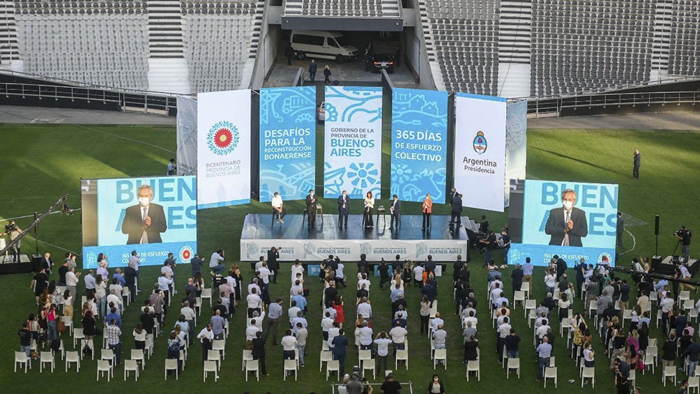 No Estádio Único da cidade de La Plata, que se denominará Diego Maradona, realizou-se o emblemático ato, “Desafios para a reconstrução bonaerense”, organizado pelo governador da Província de Buenos Aires, Axel Kicillof com 135 prefeitos, ministros e líderes da Casa de Governo, sindicalistas, deputados provinciais e federais, como Sergio Massa (presidente da Câmara) e Máximo Kirchner (chefe da Frente de Todos na Câmara) e o presidente Alberto Fernandez e a vice-presidenta, Cristina Kirchner. O ato, além de um anúncio de medidas para o próximo ano de construção de obras públicas e casas populares e inclusão social na maior província argentina, representou uma mensagem de unidade das principais forças políticas da coligação governamental da Frente de Todos e uma síntese de balanço de um ano de gestão, já expresso nas últimas declarações de Alberto à nação e nas 3 recentes cartas de Cristina à cidadania.