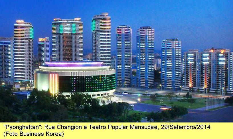 O edifício vazio de 105 andares do Hotel Ryugyong permaneceu durante décadas no centro de Pyongyang como uma recordação das perturbações económicas após o fim da URSS. [1] Hoje esta narrativa de indigência é desmentida pela impressionante velocidade do desenvolvimento arquitectónico no resto da cidade tal como o da prestigiada Rua Ryomyong.