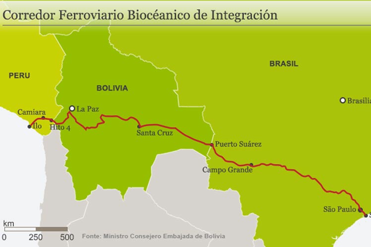 Bolívia coordena o Grupo Operativo Bioceânico que tramita a participação de consultores encarregados de reunir todos os projetos, estudos e análises sobre a construção do caminho-de-ferro.