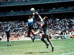 Aos 6 minutos do segundo tempo, numa bola alçada despretensiosamente para a área inglesa, o goleiro Shilton (de 1m84) saiu para colher com uma mão apenas o cruzamento, mas o baixinho Maradona (de 1m68) foi ao encontro dele, saltou o que pode de pernas encolhidas e deu um soquinho malandro na pelota, o suficiente pra tirá-la do alcance do goleiro e desviá-la para as redes… Espertamente, Maradona saiu comemorando o gol. “Usei a cabeça e la mano de Dios” -, diria. O árbitro da Tunísia, Ali Bennaceur, longe do lance e o bandeira na lateral nada viram, confirmaram o gol, sob protestos inflamados dos ingleses que reclamavam e apontavam a mão, a ilegalidade do lance.