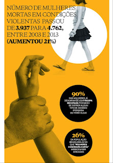 No perverso universo da violência contra a mulher, o número de vítimas mortas em condições violentas cresceu 21% entre 2003 e 2013, passando de 3.937 para 4.762, segundo dados do Mapa da Violência 2015: Homicídio de mulheres no Brasil. O triste aumento representa uma média de 13 homicídios femininos por dia.