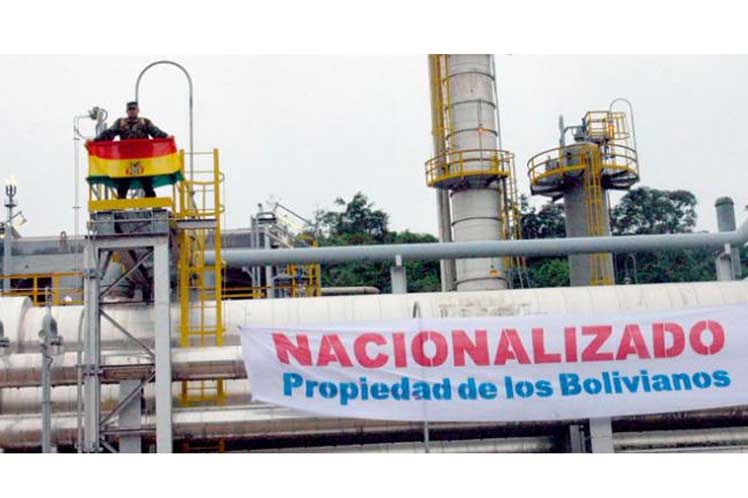 Morales realçou que os benefícios à população são resultado da nacionalização dos recursos e a recuperação, por parte do Estado, das empresas estratégicas, o qual permitiu resgatar a matriz econômica da nação America do Sul.