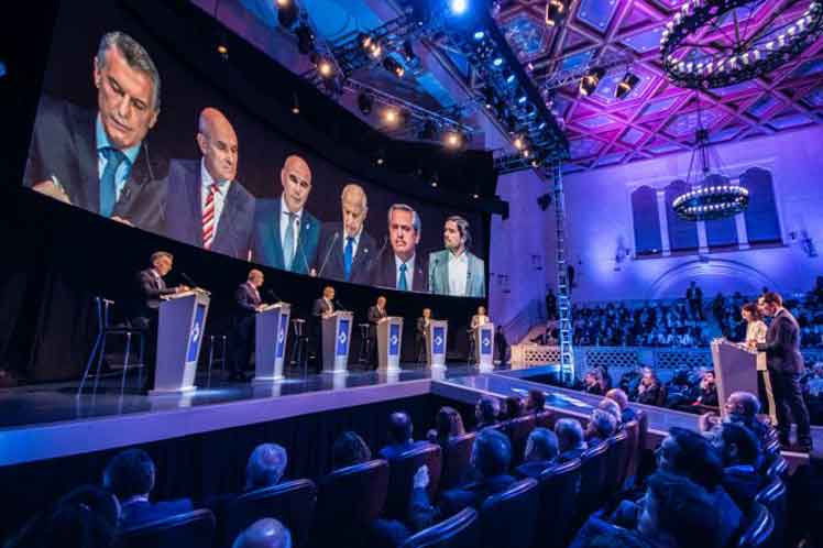 O presidente Mauricio Macri (Juntos pela Mudança) defendeu seus feitos até agora nos temas expostos, já Alberto Fernández (Frente de Todos), Nicolá del Caño (FIT), Juan José Gómez Centurión (Frente NOS), José Luis Espert (Frente Despertar) e Roberto Lavagna (Consenso Federal), apresentaram suas propostas e condenaram veementemente algumas do mandatário.