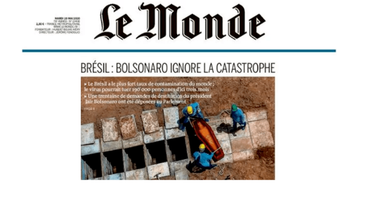 No G1 – O tradicional jornal francês “Le Monde” publicou um editorial em seu site nesta segunda-feira (18) em que afirma que o presidente Jair Bolsonaro nega a gravidade da pandemia de Covid-19 e conduz o Brasil em uma via “extremamente perigosa”. A postura do presidente “causa caos na saúde e semeia a morte”, segundo o diário.