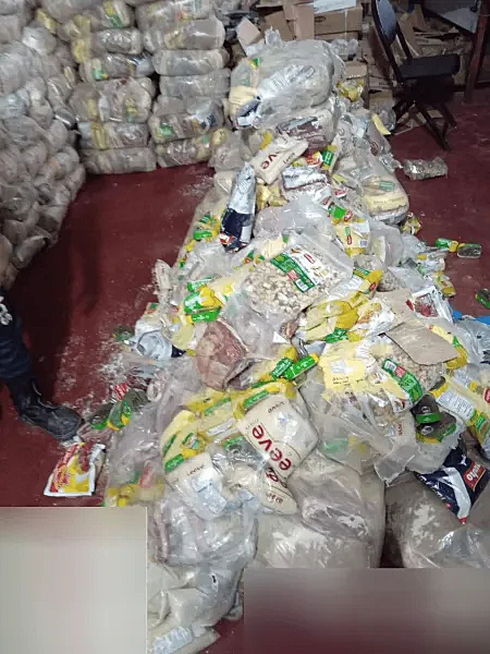 Cestas básicas em depósito à espera de sua destinação; Defesa diz que não tem dinheiro para realizar entrega – Reprodução