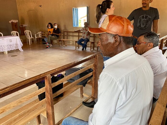 De chapéu, Cláudio Teófilo, vice-presidente da Associação Territorial do Quilombo Lagoa, em reunião para organizar resistência à mineração – Luan Matheus