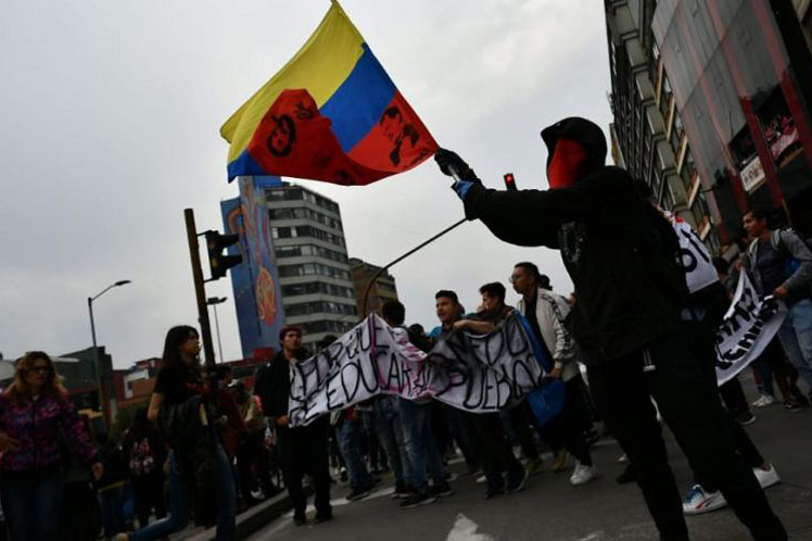 No Centro de Memória de Bogotá, os manifestantes começam a se reunir com faixas nas quais é possível ler slogans como ‘se ficarmos calados, eles nos matam’.