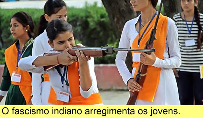 Na própria Índia, embora a RSS exista há cem anos, a ascensão ao poder exclusivo no centro de sua organização política de frente, o [partido] BJP, ocorreu apenas em 2014, depois que ela conquistou o apoio das grandes empresas do país. Narendra Modi foi fundamental para efetivar essa aliança entre os elementos fascistas e o big business; e o seu nome para o cargo de primeiro-ministro foi cogitado pela primeira vez em uma cúpula de investidores da qual participaram todos os grandes capitalistas do país, organizada pelo governo de Gujarat quando ele era o ministro-chefe daquele estado.