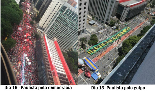 O clima entre os manifestantes era de muita disposição de luta. Em meio à multidão, encontramos Eliane Ornellas, professora de História em Diadema, região metropolitana de São Paulo. “Temos que lutar pela democracia. O que está acontecendo com o pedido desse impeachment é um golpe pelo poder. A direita é contrária ao avanço social conquistado durante o governo Dilma. Nós, como povo, somos a favor da democracia. A gente tem que estar na rua. Temos que demonstrar de que lado estamos e o que lado estamos protegendo”, afirmou Eliane.