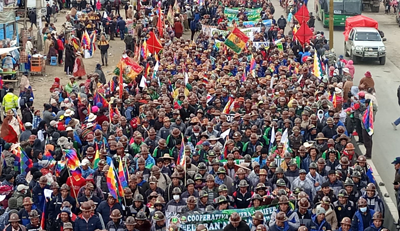 Depois de viajar quase 200 quilômetros em sete dias de Oruro até esta cidade, mais de um milhão de bolivianos dos nove departamentos se reuniram na Plaza San Francisco em La Paz para apoiar o governo de Arce e o processo de mudança que está ocorrendo nesta nação.