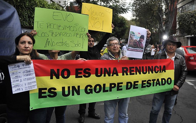 Em primeiro lugar dissemos golpe de Estado porque o presidente Evo teria de cumprir sua gestão até o próximo 22 de janeiro. Porém, pela situação que vivia nosso país, pela pressão que houve dos setores ligados à direita, a perseguição de dirigentes, queima de residências de deputados e senadores, além do sequestro de familiares, tudo isso fez com que o presidente Evo, pensando neles, a fim de que parasse essa perseguição, renunciasse ao cargo. Da mesma forma procedeu o vice-presidente, pensando que assim iriam apaziguar a situação. Mas ocorreu o contrário, já que nem bem assumiu a autoproclamada presidenta transitória começou a convulsionar ainda mais e de forma mais grave o país.